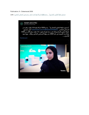 Publication: X – Estesmarat 2030 Link: "يضاملا سطسغأ ىتح مهرد رايلم 1.4 ةميقب ةكرش 1200 معدي "عيراشملا ريوطتل ةفيلخ قودنص