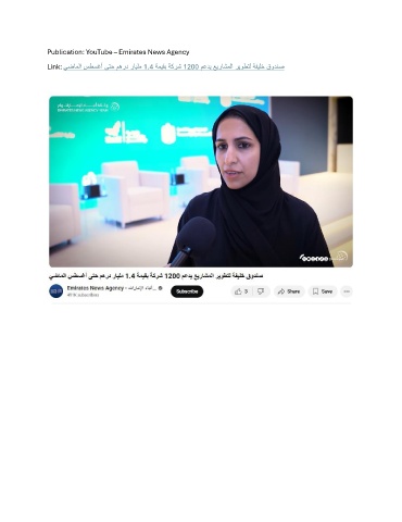 Publication: YouTube – Emirates News Agency Link: يضاملا سطسغأ ىتح مهرد رايلم 1.4 ةميقب ةكرش 1200 معدي عيراشملا ريوطتل ةفيلخ قودنص