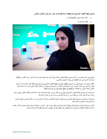 يضاملا سطسغأ ىتح مهرد رايلم 1.4 ةميقب ةكرش 1200 معدي عيراشملا ريوطتل ةفيلخ قودنص