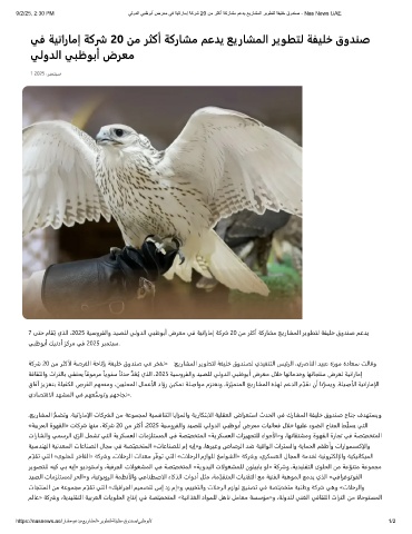 9/2/25, 2:30 PM ﻲﻟودﻟا ﻲﺑظوﺑأ ضرﻌﻣ ﻲﻓ ﺔﯾﺗارﺎﻣإ ﺔﻛرﺷ 20 نﻣ رﺛﻛأ ﺔﻛرﺎﺷﻣ مﻋدﯾ ﻊﯾرﺎﺷﻣﻟا رﯾوطﺗﻟ ﺔﻔﯾﻠﺧ قودﻧﺻ - Nas News UAE