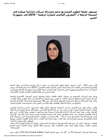 ةرﺎﺠﺘﻟا لﺎﺠﻣ ﻲﻓ ﺔﻠﻣﺎﻋ ﺔﯿﺗارﺎﻣإ تﺎﻛﺮﺷ ﻪﻤﻋد ﻦﻋ "ﻊﻳرﺎﺸﻤﻟا ﺮﻳﻮﻄﺘﻟ ﺔﻔﯿﻠﺧ قوﺪﻨﺻ" ﻦﻠﻋأ - 2025 ﺮﺒﻤﺘﺒﺳ 26