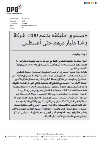 Publication: Al Etihad Country: UAE Circulation: 109,640 Date: 22 September 2025 Page: 7