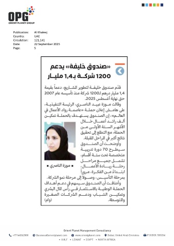 Publication: Al Khaleej Country: UAE Circulation: 121,141 Date: 22 September 2025 Page: 5