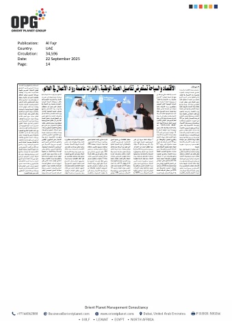Publication: Al Fajr Country: UAE Circulation: 34,596 Date: 22 September 2025 Page: 14