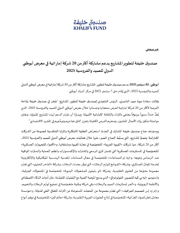 ��وﺪﻟا ي�ﻇﻮﺑأ ضﺮﻌﻣ �� ﺔﻴﺗارﺎﻣإ ﺔﻛﺮﺷ 20 ﻦﻣ ��ﻛأ ﺔﻛرﺎﺸﻣ ﻊيرﺎﺸﳌا ﺮ�ﻮﻄﺘﻟ ﺔﻔﻴﻠﺧ قوﺪﻨﺻ ﻢﻋﺪﻳ : 2025 ��ﻤﺘبﺳ 02 ،ي�ﻇﻮﺑأ
