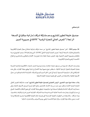 ﺔﻴﻧو��ﻜﻟﻹا ةرﺎﺠﺘﻟا لﺎﺠﻣ �� ﺔ ﻠﻣﺎﻋ ﺔ ﻴﺗارﺎﻣإ تﺎ �ﺮﺷ ﮫﻤﻋد ﻦﻋ "ﻊيرﺎﺸﳌا ﺮ�ﻮﻄﺘﻟ ﺔﻔﻴﻠﺧ قوﺪﻨﺻ" ﻦﻠﻋأ - 2025 ��ﻤﺘبﺳ 26