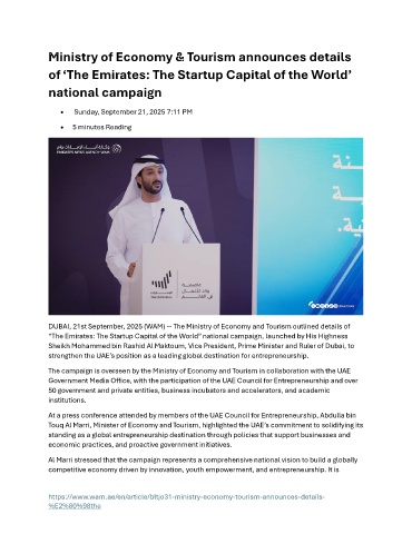 DUBAI, 21st September, 2025 (WAM) -- The Ministry of Economy and Tourism outlined details of