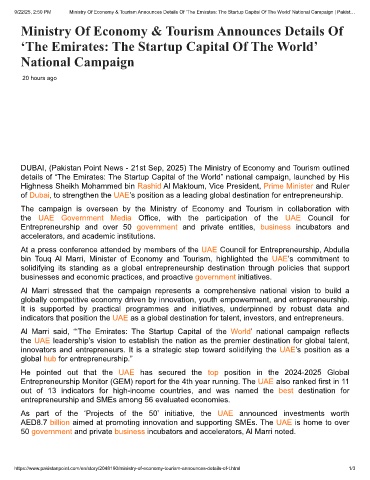 9/22/25, 2:50 PM Ministry Of Economy & Tourism Announces Details Of ‘The Emirates: The Startup Capital Of The World’ National Campaign | Pakist…