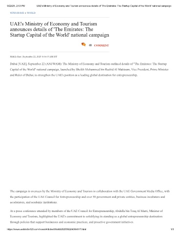 9/22/25, 2:53 PM UAE's Ministry of Economy and Tourism announces details of 'The Emirates: The Startup Capital of the World' national campaign