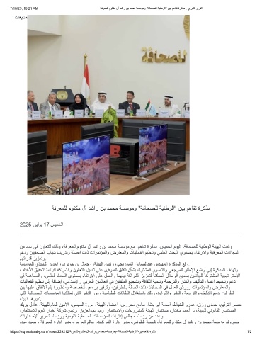 نﻣ ددﻋ ﻲﻓ نوﺎﻌﺗﻠﻟ كﻟذو ،ﺔﻓرﻌﻣﻠﻟ موﺗﻛﻣ لآ دﺷار نﺑ دﻣﺣﻣ ﺔﺳﺳؤﻣ ﻊﻣ ،مھﺎﻔﺗ ةرﻛذﻣ ،سﯾﻣﺧﻟا موﯾﻟا ،ﺔﻓﺎﺣﺻﻠﻟ ﺔﯾﻧطوﻟا ﺔﺋﯾﮭﻟا تﻌﻗو