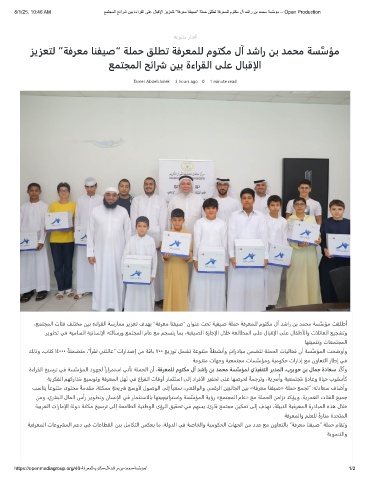 ،ﻊﻤﺘﺠﻤﻟا تﺎﺌﻓ ﻒﻠﺘﺨﻣ ﻦﻴﺑ ةءاﺮﻘﻟا ﺔﺳرﺎﻤﻣ ﺰﻳﺰﻌﺗ فﺪﻬﺑ ”ﺔﻓﺮﻌﻣ ﺎﻨﻔﻴﺻ“ ناﻮﻨﻋ ﺖﺤﺗ ﺔﻴﻔﻴﺻ ﺔﻠﻤﺣ ﺔﻓﺮﻌﻤﻠﻟ مﻮﺘﻜﻣ لآ ﺪﺷار ﻦﺑ ﺪﻤﺤﻣ ﺔﺴﱠﺳﺆﻣ ﺖﻘﻠﻃأ