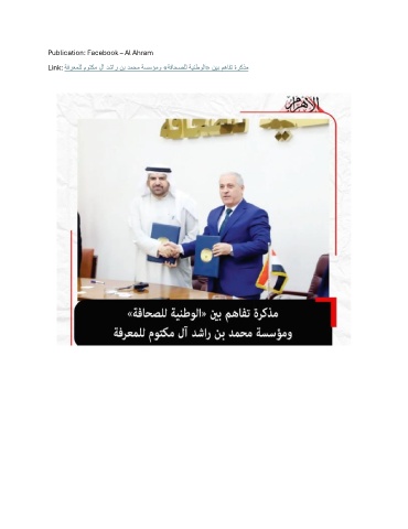 Publication: Facebook – Al Ahram Link: ةفرعملل موتكم لآ دشار نب دمحم ةسسؤمو »ةفاحصلل ةينطولا« نيب مهافت ةركذم