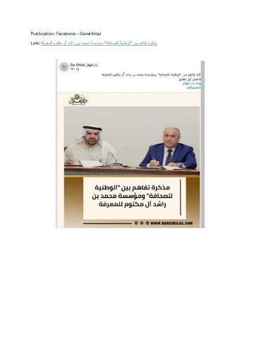 Publication: Facebook – Darel Hilal Link: ةفرعملل موتكم لآ دشار نب دمحم ةسسؤمو "ةفاحصلل ةينطولا" نيب مهافت ةركذم