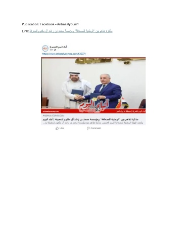 Publication: Facebook – Anbaaalyoum1 Link: ةفرعملل موتكم لآ دشار نب دمحم ةسسؤمو ”ةفاحصلل ةينطولا” نيب مهافت ةركذم
