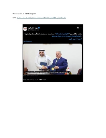 Publication: X - Akhbarelyom Link: ةفرعملل موتكم لآ دشار نب دمحم ةسسؤمو »ةفاحصلل_ةينطولا#« نيب مهافت ةركذم