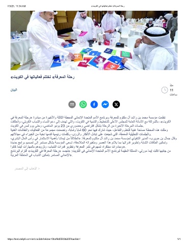ﻲﻓ ﺔﻓرﻌﻣﻟا ﺔﻠﺣر» ةردﺎﺑﻣ نﻣ ةرﯾﺧﻷاو ﺔﺛﻟﺎﺛﻟا ﺔطﺣﻣﻟا ﻲﺋﺎﻣﻧﻹا ةدﺣﺗﻣﻟا مﻣﻷا ﺞﻣﺎﻧرﺑو ﺔﻓرﻌﻣﻠﻟ موﺗﻛﻣ لآ دﺷار نﺑ دﻣﺣﻣ ﺔﺳﺳؤﻣ تﻣظﻧ