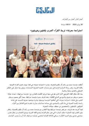 ﺔﻴﻋﻮﻨﻟا ةءاﺮﻘﻟا ﺰﻳﺰﻌﺗ فﺪﻬﺑ ،اﺪﻨﻛ ﻓ «ﺔﻓﺮﻌﻣ ﺔﺣاﺮﺘﺳا» ةردﺎﺒﻣ ،ﺔﻓﺮﻌﻤﻠﻟ مﻮﺘﻣ لآ ﺪﺷار ﻦﺑ ﺪﻤﺤﻣ ﺔﺴﺳﺆﻣ ﺖﻘﻠﻃأ