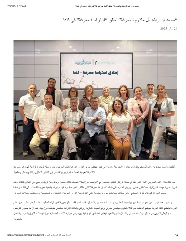 تارﺎﺴﻣ ﻢﻋد ﻰﻟإ ﺔﯿﻣاﺮﻟا ةردﺎﺒﻤﻟا ﺔﻟﺎﺳر ﺮﺸﻧو ﺔﯿﺑﺮﻌﻟا ﺔﻐﻠﻟﺎﺑ ﺔﯿﻋﻮﻨﻟا ةءاﺮﻘﻟا ﺰﯾﺰﻌﺗ فﺪﮭﺑ ،اﺪﻨﻛ ﻲﻓ ”ﺔﻓﺮﻌﻣ ﺔﺣاﺮﺘﺳا“ ةردﺎﺒﻣ ﺔﻓﺮﻌﻤﻠﻟ مﻮﺘﻜﻣ لآ ﺪﺷار ﻦﺑ ﺪﻤﺤﻣ ﺔﺴﺳﺆﻣ ﺖﻘﻠطأ