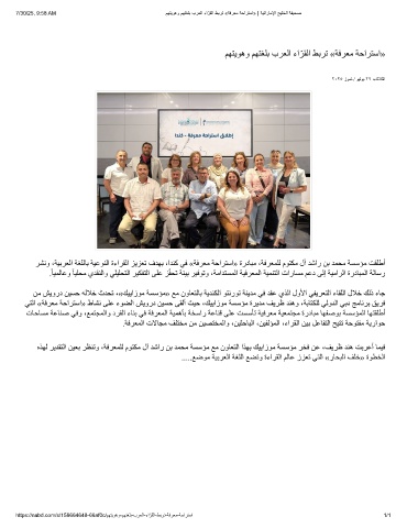 ﺮﺸﻧو ،ﺔﯿﺑﺮﻌﻟا ﺔﻐﻠﻟﺎﺑ ﺔﯿﻋﻮﻨﻟا ةءاﺮﻘﻟا ﺰﯾﺰﻌﺗ فﺪﮭﺑ ،اﺪﻨﻛ ﻲﻓ «ﺔﻓﺮﻌﻣ ﺔﺣاﺮﺘﺳا» ةردﺎﺒﻣ ،ﺔﻓﺮﻌﻤﻠﻟ مﻮﺘﻜﻣ لآ ﺪﺷار ﻦﺑ ﺪﻤﺤﻣ ﺔﺴﺳﺆﻣ ﺖﻘﻠطأ