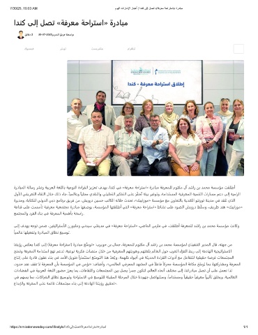 ةردﺎﺒﻤﻟا ﺔﻟﺎﺳر رشﻧو ﺔﻴﺑﺮﻌﻟا ﺔﻐﻠﻟﺎﺑ ﺔﻴﻋﻮﻨﻟا ةءاﺮﻘﻟا ﺰﻳﺰﻌﺗ فﺪﻬﺑ ،اﺪﻨﻛ ﻲﻓ «ﺔﻓﺮﻌﻣ ﺔﺣاﺮﺘﺳا» ةردﺎﺒﻣ ﺔﻓﺮﻌﻤﻠﻟ مﻮﺘﻜﻣ لآ ﺪﺷار ﻦﺑ ﺪﻤﺤﻣ ﺔﺴﺳﺆﻣ ﺖﻘﻠﻃأ