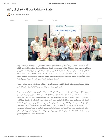 ﺔﻴﻋﻮﻨﻟا ةءاﺮﻘﻟا ﺰﻳﺰﻌﺗ فﺪﻬﺑ ،اﺪﻨﻛ ﻲﻓ «ﺔﻓﺮﻌﻣ ﺔﺣاﺮﺘﺳا» ةردﺎﺒﻣ ﺔﻓﺮﻌﻤﻠﻟ مﻮﺘﻜﻣ لآ ﺪﺷار ﻦﺑ ﺪﻤﺤﻣ ﺔﺴﺳﺆﻣ ﺖﻘﻠﻃأ