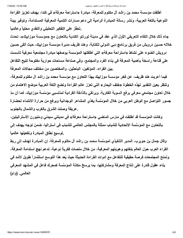 ةءارﻘﻟا زﯾزﻌﺗ فدﮭﺑ ،ادﻧﻛ ﻲﻓ «ﺔﻓرﻌﻣ ﺔﺣارﺗﺳا» ةردﺎﺑﻣ ،ﺔﻓرﻌﻣﻠﻟ موﺗﻛﻣ لآ دﺷار نﺑ دﻣﺣﻣ ﺔﺳﺳؤﻣ تﻘﻠطأ