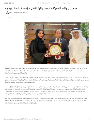 7/29/25, 10:07 AM «موﯾﻟا تارﺎﻣﻹا رﺎﺑﺧأ | عادﺑﻺﻟ ﺔﻣﻋاد ﺔﺳﺳؤﻣ لﺿﻓأ ةزﺋﺎﺟ دﺻﺣﺗ «ﺔﻓرﻌﻣﻠﻟ دﺷار نﺑ دﻣﺣﻣ