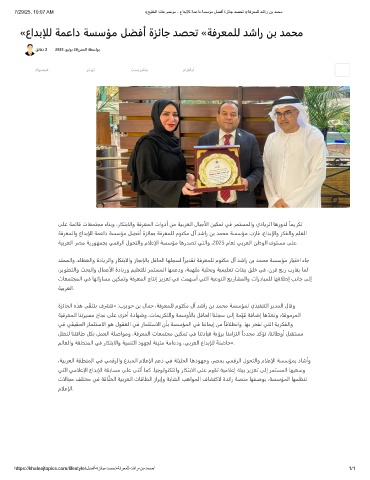 7/29/25, 10:07 AM «ﺞﯾﻠﺧﻟا تﺎﻋوﺿوﻣ - عادﺑﻺﻟ ﺔﻣﻋاد ﺔﺳﺳؤﻣ لﺿﻓأ ةزﺋﺎﺟ دﺻﺣﺗ «ﺔﻓرﻌﻣﻠﻟ دﺷار نﺑ دﻣﺣﻣ
