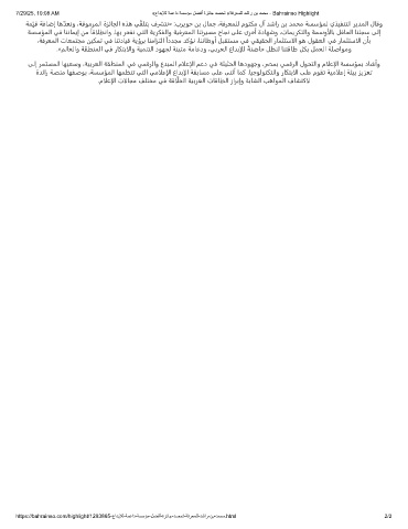 7/29/25, 10:08 AM «عادﺑﻺﻟ ﺔﻣﻋاد ﺔﺳﺳؤﻣ لﺿﻓأ ةزﺋﺎﺟ دﺻﺣﺗ «ﺔﻓرﻌﻣﻠﻟ دﺷار نﺑ دﻣﺣﻣ - Bahrainso Highlight