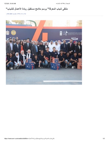 7/23/25, 10:56 AM تارﺎﻣﻹا ءﺎﺑﻧأ ﺔﻟﺎﻛو | ﺔﯾﺳﯾﺋرﻟا "بﺎﺑﺷﻠﻟ لﺎﻣﻋﻷا ةدﺎﯾر لﺑﻘﺗﺳﻣ ﺢﻣﻼﻣ مﺳرﯾ "ﺔﻓرﻌﻣﻟا بﺎﺑﺷ ﻰﻘﺗﻠﻣ م 9:00 2025 وﯾﻟوﯾ 22 ،ءﺎﺛﻼﺛﻟاةءارﻗ ةدﺣاو ﺔﻘﯾﻗد https://www.wam.ae/ar/article/bkt80nm-لﺎﻣﻋﻷا-ةدﺎﯾر-لﺑﻘﺗﺳﻣ-ﺢﻣﻼﻣ-مﺳرﯾ-ﺔﻓرﻌﻣﻟا-بﺎﺑﺷ-ﻰﻘﺗﻠﻣ 1/3