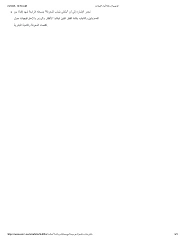 نﻣ ﻻﺎﺑﻗإ دﮭﺷ ﺔﻌﺑارﻟا ﮫﺗﺧﺳﻧﺑ "ﺔﻓرﻌﻣﻟا بﺎﺑﺷ ﻰﻘﺗﻠﻣ" نأ ﻰﻟإ ةرﺎﺷﻹا ردﺟﺗ