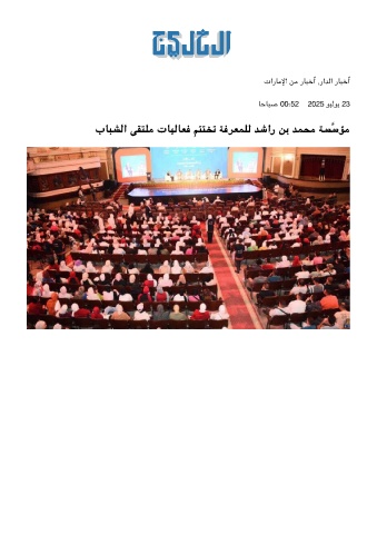 تارﺎﻣﻹا ﻦﻣ رﺎﺒﺧأ ,راﺪﻟا رﺎﺒﺧأ ﺎﺣﺎﺒﺻ 00:52 2025 ﻮﻴﻟﻮﻳ 23 بﺎﺒﺸﻟا ﻘﺘﻠﻣ تﺎﻴﻟﺎﻌﻓ ﻢﺘﺘﺨﺗ ﺔﻓﺮﻌﻤﻠﻟ ﺪﺷار ﻦﺑ ﺪﻤﺤﻣ ﺔﺴﺳﺆﻣ