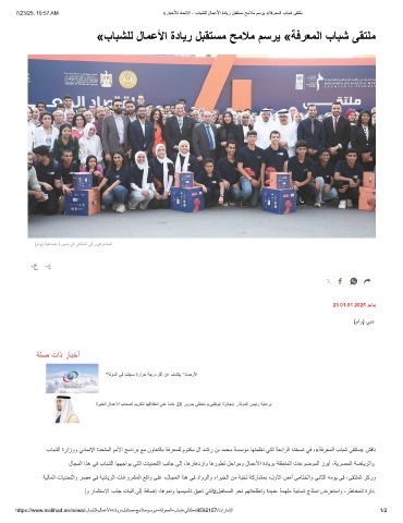 https://www.aletihad.ae/news/بﺎﺑﺷﻠﻟ-لﺎﻣﻋﻷا-ةدﺎﯾر-لﺑﻘﺗﺳﻣ-ﺢﻣﻼﻣ-مﺳرﯾ--ﺔﻓرﻌﻣﻟا-بﺎﺑﺷ-ﻰﻘﺗﻠﻣ-/4592157/تارﺎﻣﻹا 1/2