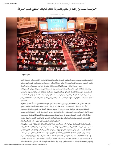 يﺬﻟا ،”ﺔﻓﺮﻌﻤﻟا بﺎﺒﺷ ﻰﻘﺘﻠﻣ“ ﻦﻣ ﺔﻌﺑاﺮﻟا ﺔﺨﺴﻨﻟا تﺎﻴﻟﺎﻌﻓ ﺔﻓﺮﻌﻤﻠﻟ مﻮﺘﻜﻣ لآ ﺪﺷار ﻦﺑ ﺪﻤﺤﻣ ﺔﺴﱠﺳﺆﻣ ﺖﻤﺘﺘﺧا