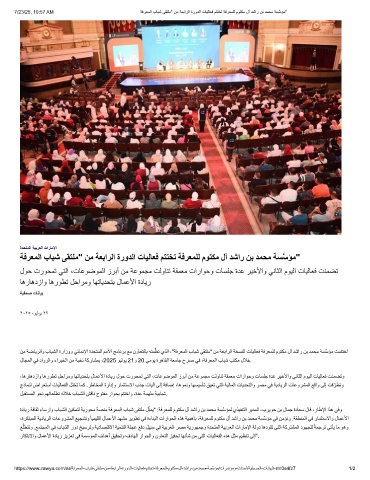 نﻣ ﺔﺿﺎﯾرﻟاو بﺎﺑﺷﻟا ةرازوو ﻲﺋﺎﻣﻧﻹا ةدﺣﺗﻣﻟا مﻣﻷا ﺞﻣﺎﻧرﺑ ﻊﻣ نوﺎﻌﺗﻟﺎﺑ ﮫﺗﻣ ﱠ ظﻧ يذﻟا ،"ﺔﻓرﻌﻣﻟا بﺎﺑﺷ ﻰﻘﺗﻠﻣ" نﻣ ﺔﻌﺑارﻟا ﺔﺧﺳﻧﻟا تﺎﯾﻟﺎﻌﻓ ﺔﻓرﻌﻣﻠﻟ موﺗﻛﻣ لآ دﺷار نﺑ دﻣﺣﻣ ﺔﺳﱠﺳؤﻣ تﻣﺗﺗﺧا
