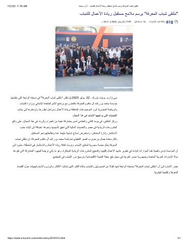 ﺎﮭﺗﻣظﻧ ﻲﺗﻟا ﺔﻌﺑارﻟا ﮫﺗﺧﺳﻧ ﻲﻓ "ﺔﻓرﻌﻣﻟا بﺎﺑﺷ ﻰﻘﺗﻠﻣ" شﻗﺎﻧ (ء2025 وﯾﻟوﯾ 22 ۔ كروﺗﻧ تﻧﯾوﺑ ودرأ ) ﻲﺑد