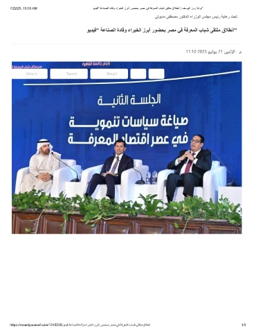 7/22/25, 10:55 AM وﯾدﯾﻓ" ﺔﻋﺎﻧﺻﻟا ةدﺎﻗو ءارﺑﺧﻟا زرﺑأ روﺿﺣﺑ رﺻﻣ ﻲﻓ ﺔﻓرﻌﻣﻟا بﺎﺑﺷ ﻰﻘﺗﻠﻣ قﻼطﻧا | فﺳوﯾﻟا زور ﺔﺑاوﺑ"