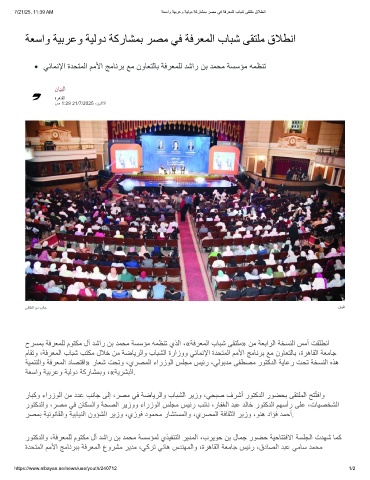 7/21/25, 11:39 AM ﺔﻌﺳاو ﺔﯾﺑرﻋو ﺔﯾﻟود ﺔﻛرﺎﺷﻣﺑ رﺻﻣ ﻲﻓ ﺔﻓرﻌﻣﻟا بﺎﺑﺷ ﻰﻘﺗﻠﻣ قﻼطﻧا