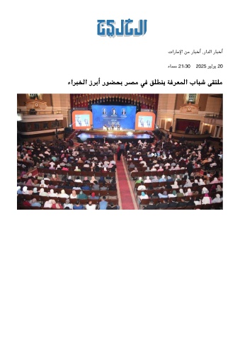 تارﺎﻣﻹا ﻦﻣ رﺎﺒﺧأ ,راﺪﻟا رﺎﺒﺧأ ءﺎﺴﻣ 21:30 2025 ﻮﻴﻟﻮﻳ 20 ءاﺮﺒﺨﻟا زﺮﺑأ رﻮﻀﺤﺑ ﺮﺼﻣ ﻓ ﻖﻠﻄﻨﻳ ﺔﻓﺮﻌﻤﻟا بﺎﺒﺷ ﻘﺘﻠﻣ