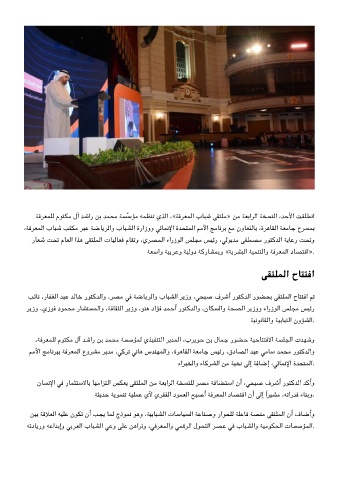 ،ﺔﻓﺮﻌﻤﻟا بﺎﺒﺷ ﺐﺘﻣ ﺮﺒﻋ ﺔﺿﺎﻳﺮﻟاو بﺎﺒﺸﻟا ةرازوو ﺋﺎﻤﻧﻹا ةﺪﺤﺘﻤﻟا ﻢﻣﻷا ﺞﻣﺎﻧﺮﺑ ﻊﻣ نوﺎﻌﺘﻟﺎﺑ ،ةﺮﻫﺎﻘﻟا ﺔﻌﻣﺎﺟ حﺮﺴﻤﺑ