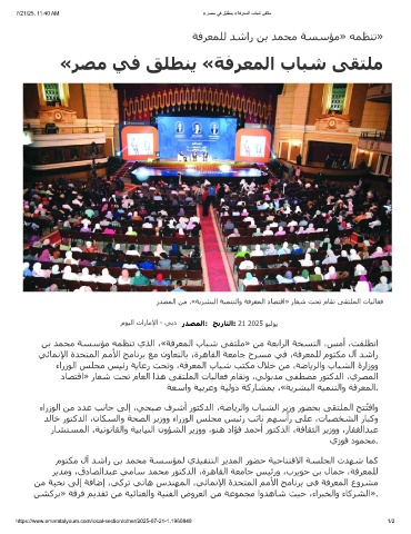 7/21/25, 11:40 AM «رﺻﻣ ﻲﻓ ﻖﻠطﻧﯾ «ﺔﻓرﻌﻣﻟا بﺎﺑﺷ ﻰﻘﺗﻠﻣ