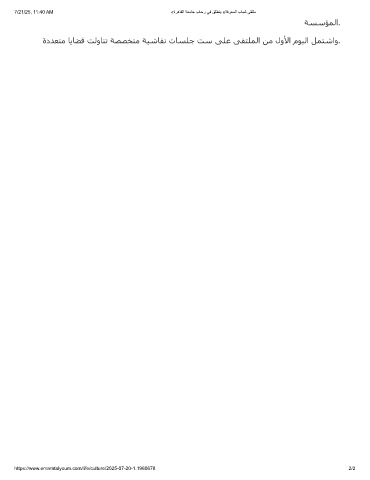 7/21/25, 11:40 AM «ةرھﺎﻘﻟا ﺔﻌﻣﺎﺟ بﺎﺣر ﻲﻓ ﻖﻠطﻧﯾ «ﺔﻓرﻌﻣﻟا بﺎﺑﺷ ﻰﻘﺗﻠﻣ ﺔﺴﺳﺆﻤﻟا. ةدﺪﻌﺘﻣ ﺎﻳﺎﻀﻗ ﺖﻟوﺎﻨﺗ ﺔﺼﺼﺨﺘﻣ ﺔﯿﺷﺎﻘﻧ تﺎﺴﻠﺟ ﺖﺳ ﻰﻠﻋ ﻰﻘﺘﻠﻤﻟا ﻦﻣ لوﻷا مﻮﯿﻟا ﻞﻤﺘﺷاو. https://www.emaratalyoum.com/life/culture/2025-07-20-1.1960678 2/2