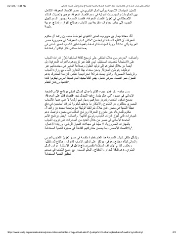 مﻣﻷا ﺞﻣﺎﻧرﺑ لﻣﻌﯾ" :فﺎﺿأو ."مﮭﻗﺎﻓآ ﻊّﺳوﺗو بﺎﺑﺷﻟا تاردﻗ ز ّ زﻌُﺗ ﻲﺗﻟا تاردﺎﺑﻣﻟا