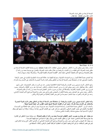 ةيرصملا ةلودلا مازتلا سكعي ىقتلملا نم ةعبارلا ةخسنلل رصم ةفاضتسا نأ ،ةضايرلاو بابشلا ريزو ،يحبص فرشأ روتكدلا دكأو