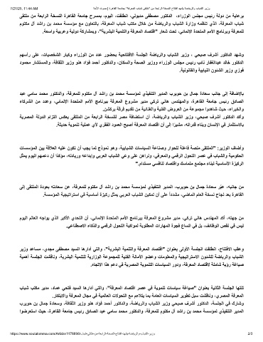 7/21/25, 11:44 AM ﺔﻣﻷا توﺻ | ةرھﺎﻘﻟا ﺔﻌﻣﺎﺟﺑ "ﺔﻓرﻌﻣﻟا بﺎﺑﺷ ﻰﻘﺗﻠﻣ" نﻣ ﺔﻌﺑارﻟا ﺔﺧﺳﻧﻟا حﺎﺗﺗﻓا دﮭﺷﯾ ﺔﺿﺎﯾرﻟاو بﺎﺑﺷﻟا رﯾزو
