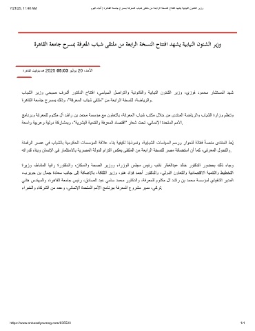 7/21/25, 11:48 AM موﯾﻟا ءﺎﺑﻧأ | ةرھﺎﻘﻟا ﺔﻌﻣﺎﺟ حرﺳﻣﺑ ﺔﻓرﻌﻣﻟا بﺎﺑﺷ ﻰﻘﺗﻠﻣ نﻣ ﺔﻌﺑارﻟا ﺔﺧﺳﻧﻟا حﺎﺗﺗﻓا دﮭﺷﯾ ﺔﯾﺑﺎﯾﻧﻟا نوﺋﺷﻟا رﯾزو