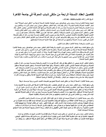 ةقيرع تاسسؤم ةيؤرو يبرعلا بابشلا تاحومط نيب عمجت ةفرعملا بابش يقتلم نم ةعبارلا ةخسنلا :ةرهاقلا ةعماج سيئر