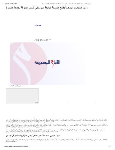 7/21/25, 11:50 AM ﺔﯾرﺻﻣﻟا مﺎﯾﻻا | ةرھﺎﻘﻟا ﺔﻌﻣﺎﺟﺑ ﺔﻓرﻌﻣﻟا بﺎﺑﺷ ﻰﻘﺗﻠﻣ نﻣ ﺔﻌﺑارﻟا ﺔﺧﺳﻧﻟا ﺢﺗﺗﻔﯾ ﺔﺿﺎﯾرﻟاو بﺎﺑﺷﻟا رﯾزو