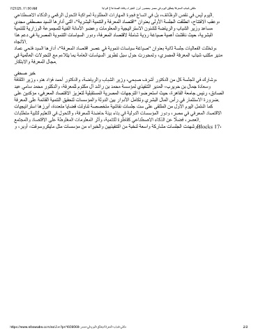تﺎﺒﻠﻄﺘﻣ ﺔﯿﺒﻠﺘﻟ ﻢﯿﻠﻌﺘﻟا ﻲﻓ لﻮﺤﺘﻟاو ،ﺔﻓﺮﻌﻤﻠﻟ ﺔﻨﺿﺎﺣ ﺔﺌﯿﺑ ءﺎﻨﺑ ﻲﻓ ﺔﯿﻟوﺪﻟا تﺎﺴﺳﺆﻤﻟا رودو ،ﺮﺼﻣ ﻲﻓ ﻲﻓﺮﻌﻤﻟا دﺎﺼﺘﻗﻻا