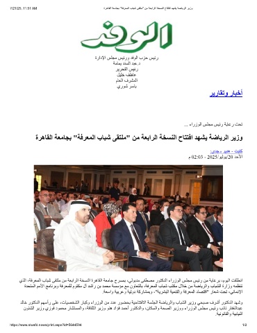 7/21/25, 11:51 AM ةرھﺎﻘﻟا ﺔﻌﻣﺎﺟﺑ "ﺔﻓرﻌﻣﻟا بﺎﺑﺷ ﻰﻘﺗﻠﻣ" نﻣ ﺔﻌﺑارﻟا ﺔﺧﺳﻧﻟا حﺎﺗﺗﻓا دﮭﺷﯾ ﺔﺿﺎﯾرﻟا رﯾزو